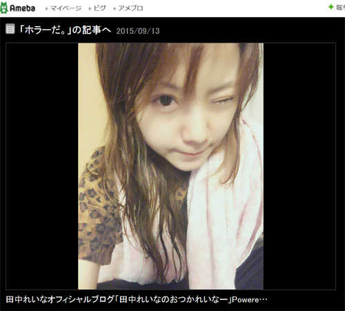 13日のブログで写真を公開した田中は、「おばけかと思って ビックリした」などと自虐しているが、ファンからは美肌を賞賛するコメントが続々と届けられている。